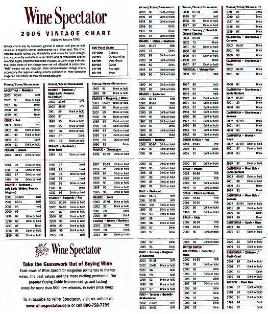 Wine Spectator Vintage Chart